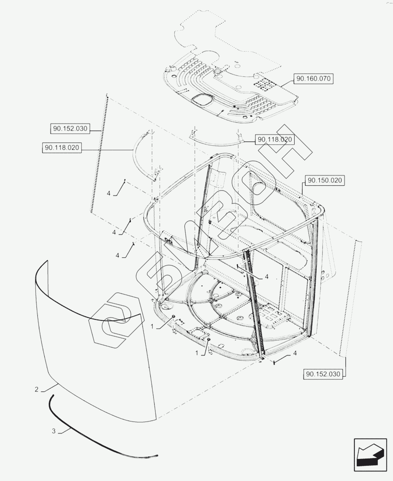 Графический каталог запасных частей к технике: New Holland Комбайн CR9080 E3 (часть 2). WINDSHIELD GLASS