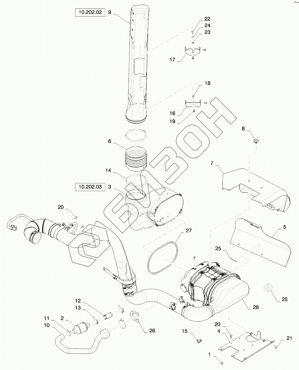 Графический каталог запасных частей к технике: New Holland T8. AIR INTAKE