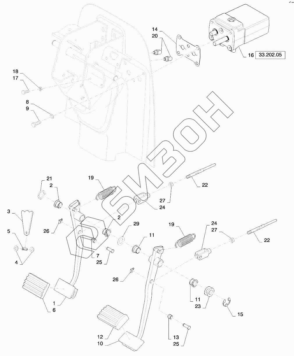 Графический каталог запасных частей к технике: New Holland T8. BRAKES, PEDAL BRAKE