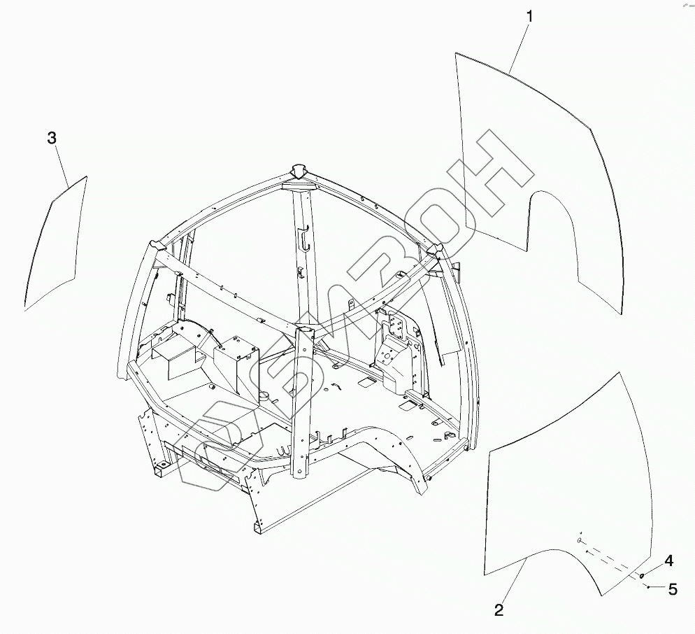 Графический каталог запасных частей к технике: New Holland T8. CAB, FIXED GLASS