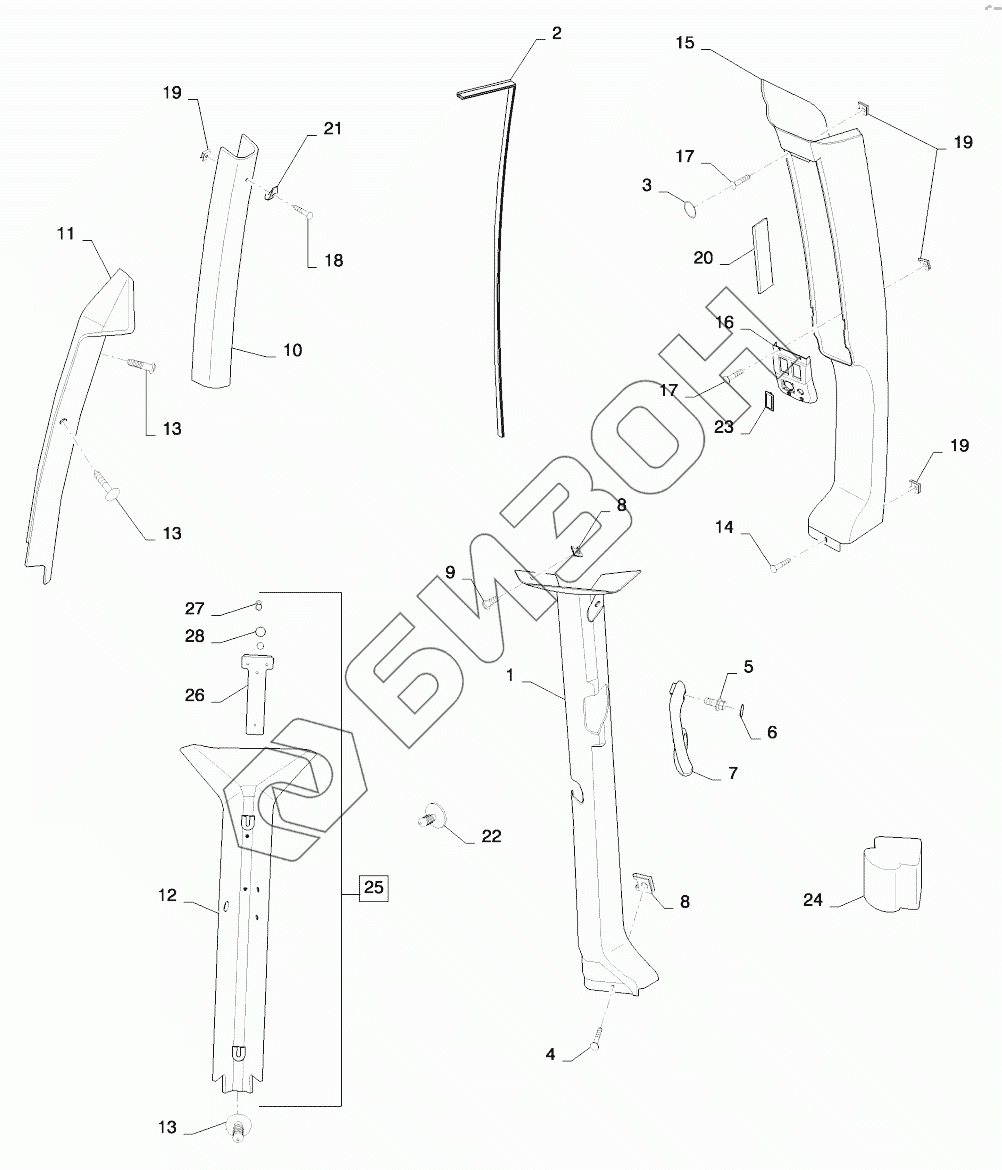 Графический каталог запасных частей к технике: New Holland T8. CAB INTERIOR TRIM - POSTS
