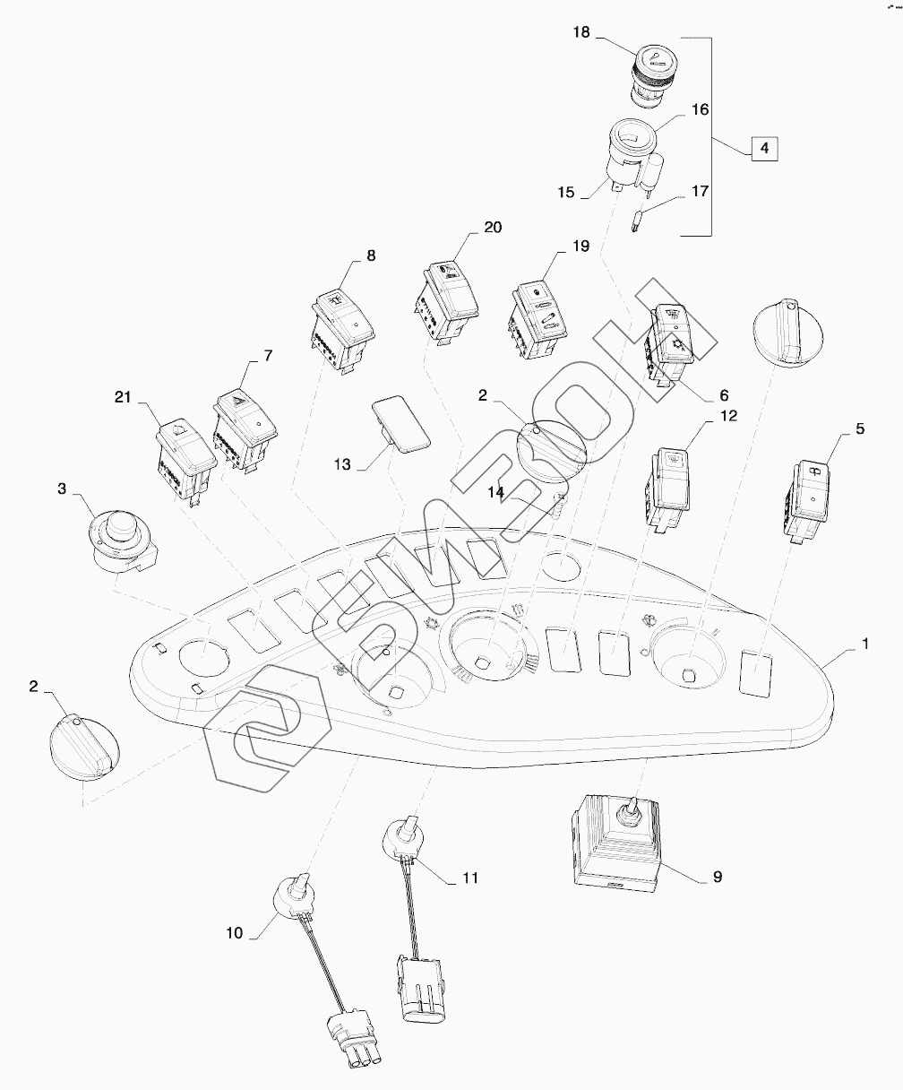 Графический каталог запасных частей к технике: New Holland T8. CONTROLS, RIGHT FENDER CONSOLE