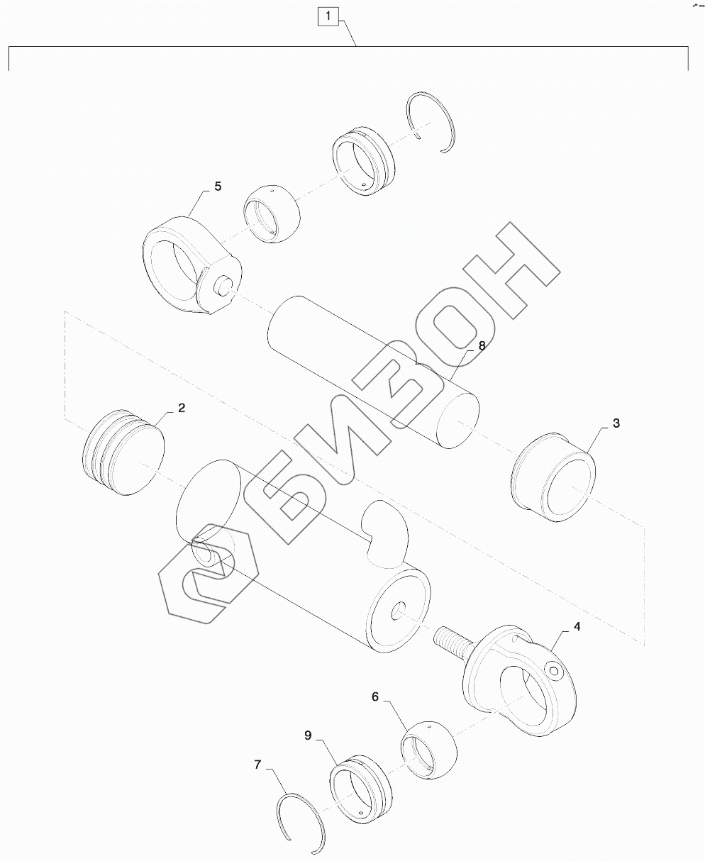 Графический каталог запасных частей к технике: New Holland T8. CYLINDER ASSEMBLY, FRONT AXLE SUSPENSION