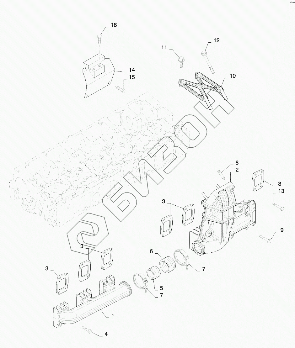 Графический каталог запасных частей к технике: New Holland T8. EXHAUST MANIFOLD (504380218)