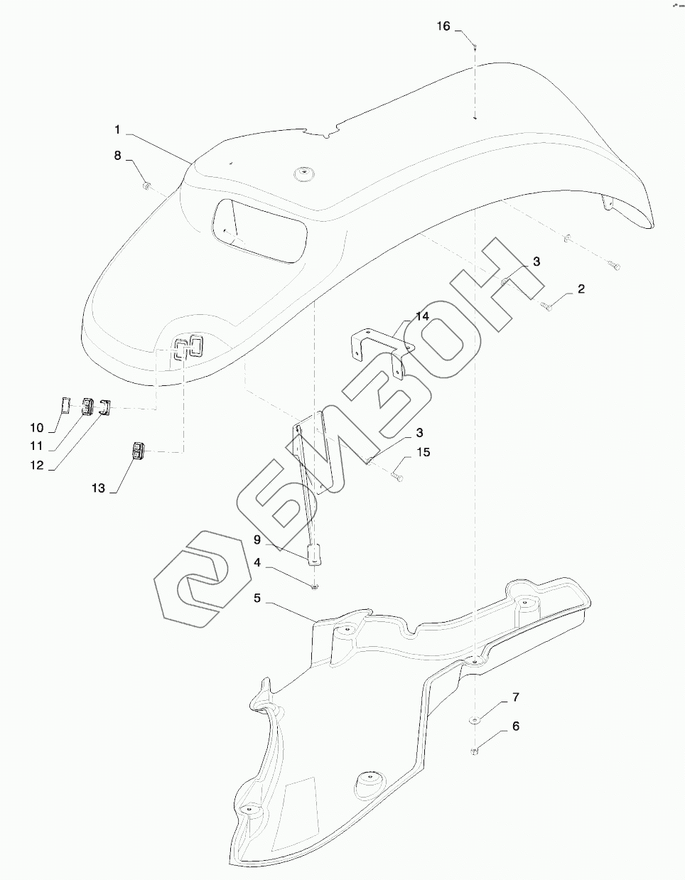 Графический каталог запасных частей к технике: New Holland T8. FENDERS - REAR, NARROW