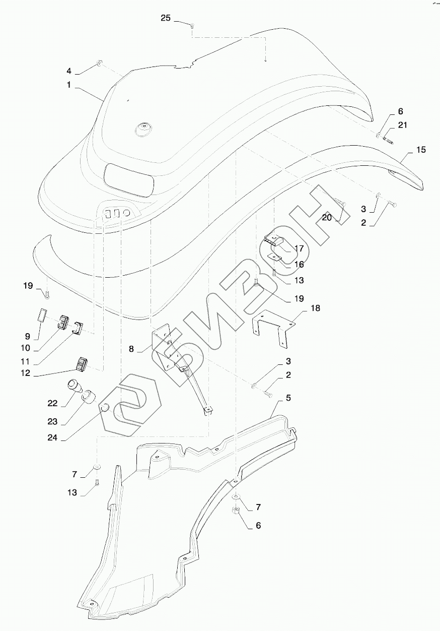 Графический каталог запасных частей к технике: New Holland T8. FENDERS - REAR, WIDE