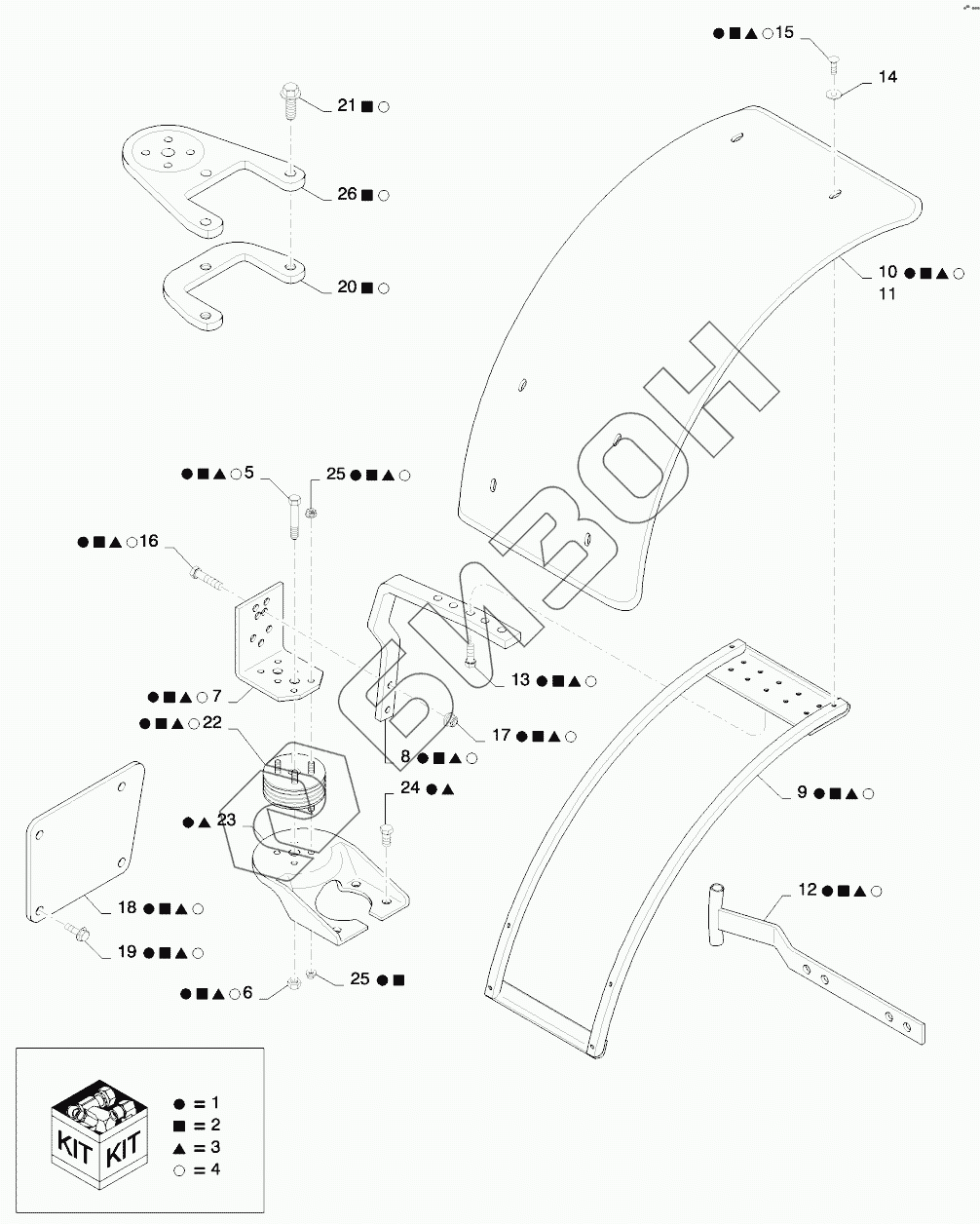 Графический каталог запасных частей к технике: New Holland T8. FENDERS, FRONT, AXLE MOUNTED, DYNAMIC