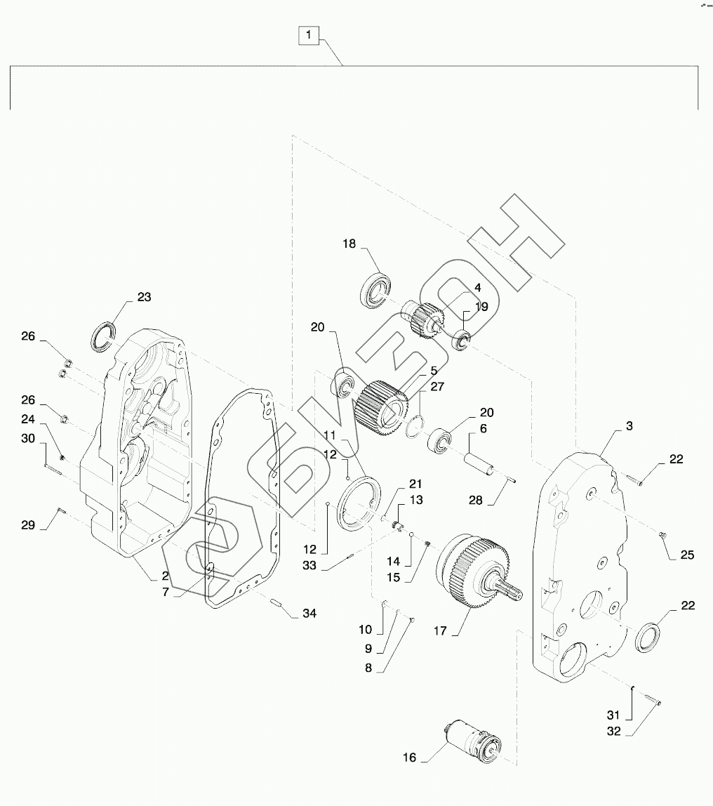 Графический каталог запасных частей к технике: New Holland T8. FPTO GEARBOX ASSEMBLY