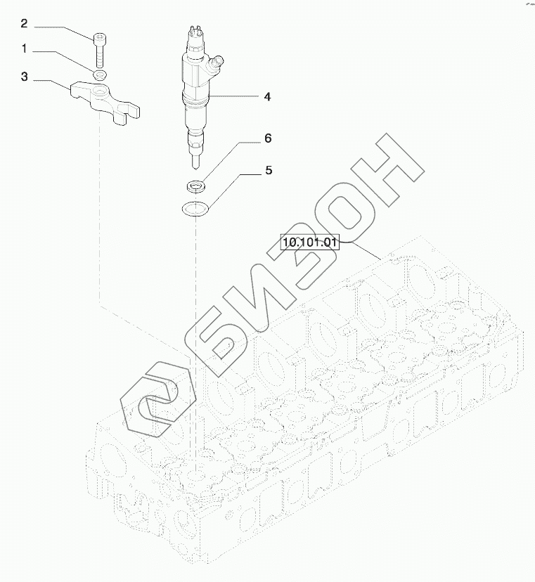 Графический каталог запасных частей к технике: New Holland T8. FUEL INJECTORS (504319990)