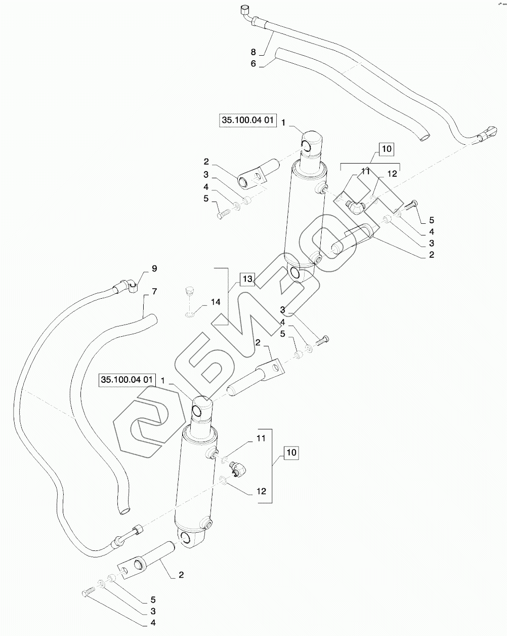 Графический каталог запасных частей к технике: New Holland T8. HITCH LIFT CYLINDER PLUMBING 95MM