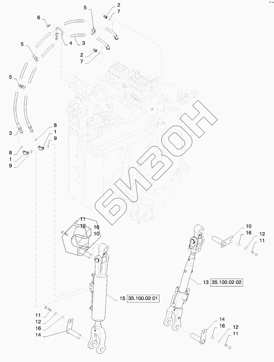 Графический каталог запасных частей к технике: New Holland T8. HITCH LIFT LINK/TURNBUCKLE PLUMBING