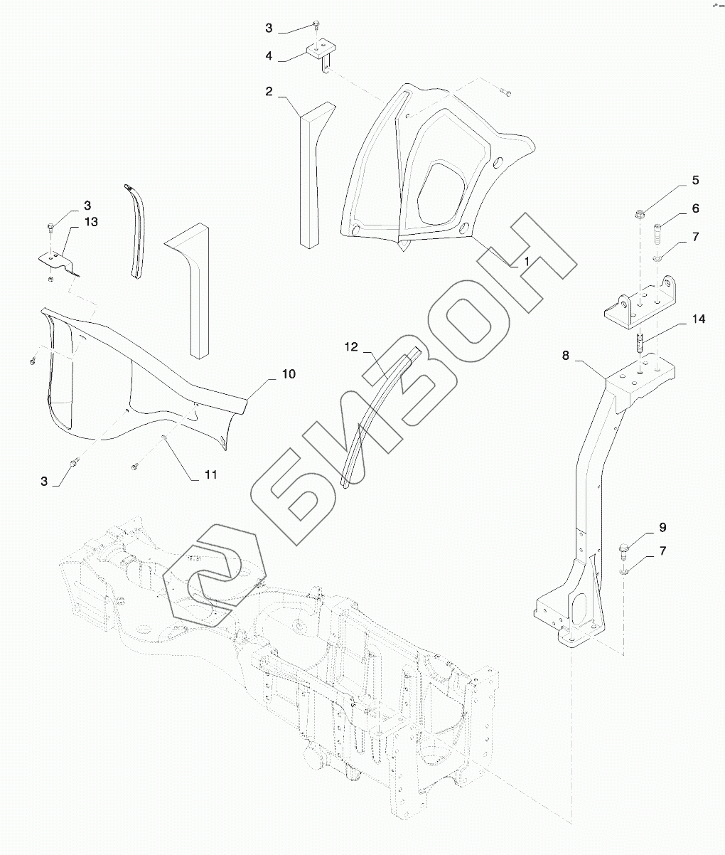 Графический каталог запасных частей к технике: New Holland T8. HOOD ASSY, FIXED