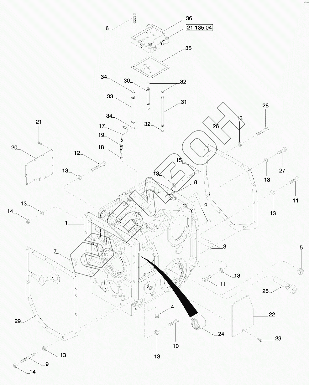 Графический каталог запасных частей к технике: New Holland T8. RANGE TRANSMISSION, HOUSING
