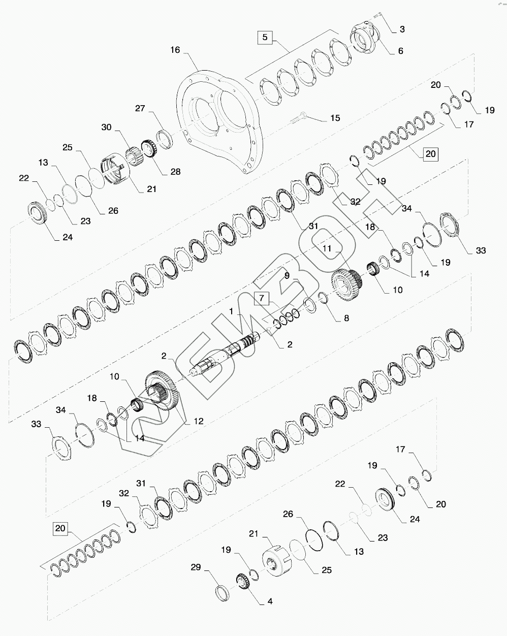 Графический каталог запасных частей к технике: New Holland T8. RANGE TRANSMISSION, INPUT SHAFT