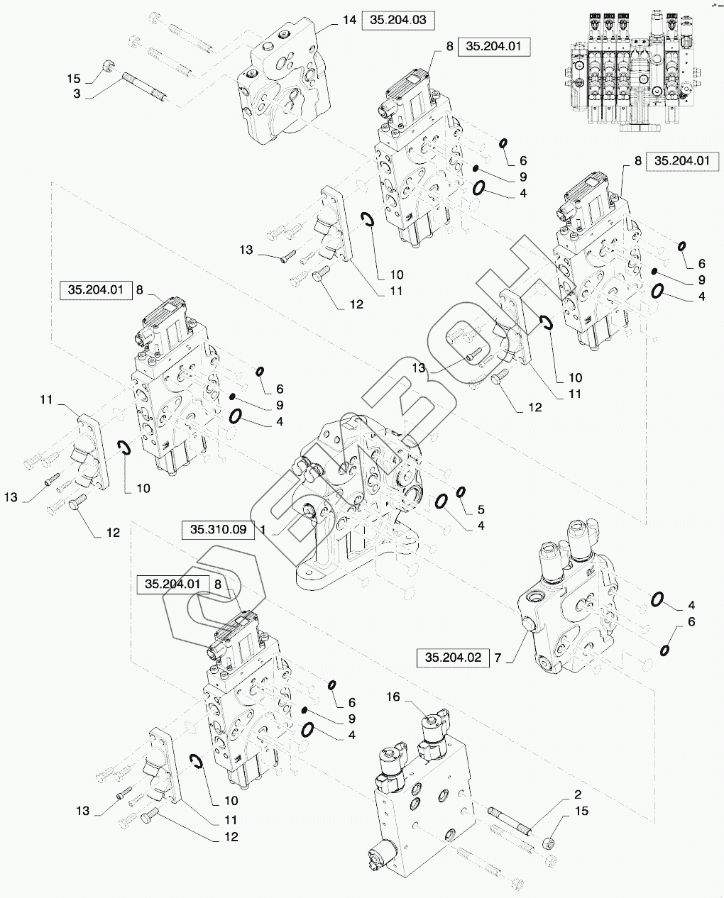 Графический каталог запасных частей к технике: New Holland T8. REMOTE HYDRAULIC VALVE 4 STACK