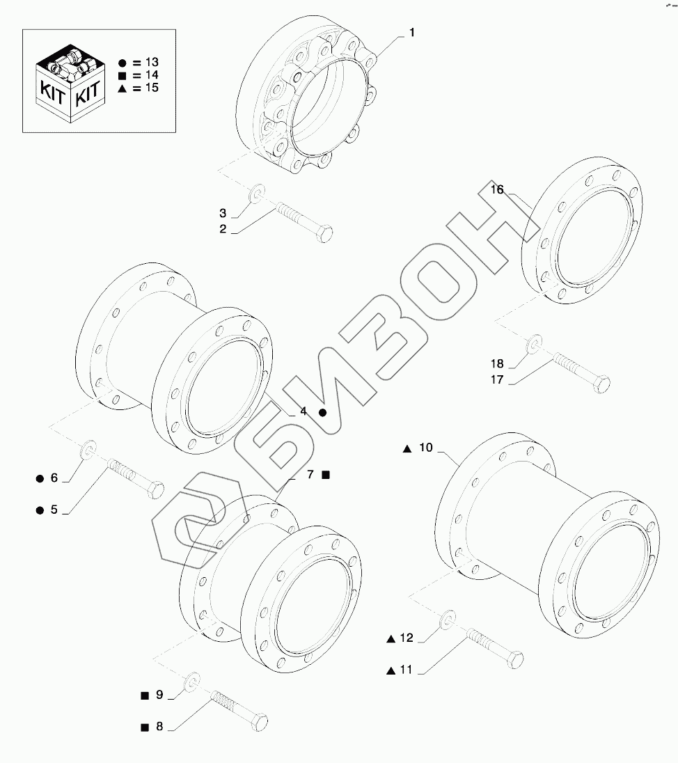 Графический каталог запасных частей к технике: New Holland T8. SPACER, DUAL REAR WHEELS