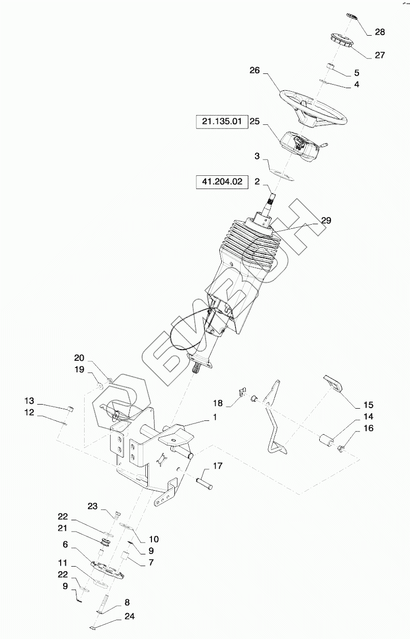 Графический каталог запасных частей к технике: New Holland T8. STEERING WHEEL and COLUMN