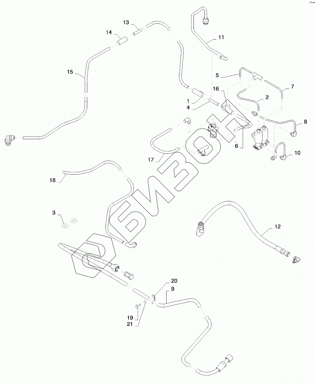Графический каталог запасных частей к технике: New Holland T8. TRAILER BRAKE PLUMBING