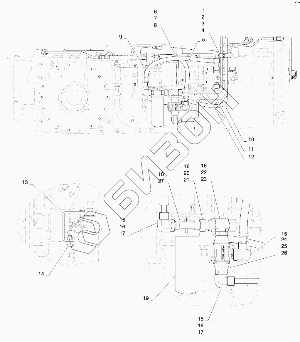 Графический каталог запасных частей к технике: New Holland T8. TRANSMISSION HYDRAULIC LUBE LINES - POWERSHIFT