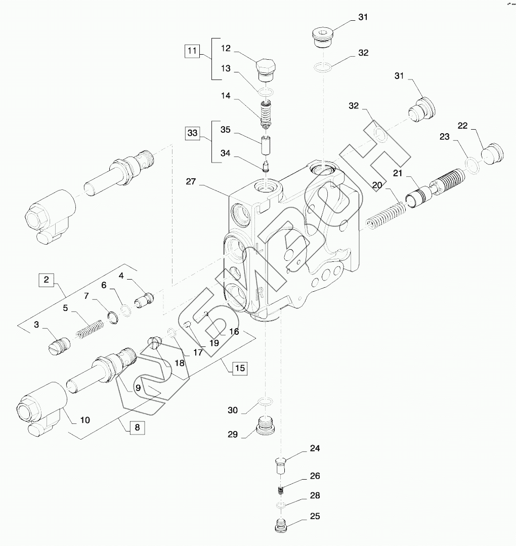 Графический каталог запасных частей к технике: New Holland T8. VALVE ASSEMBLY, HITCH