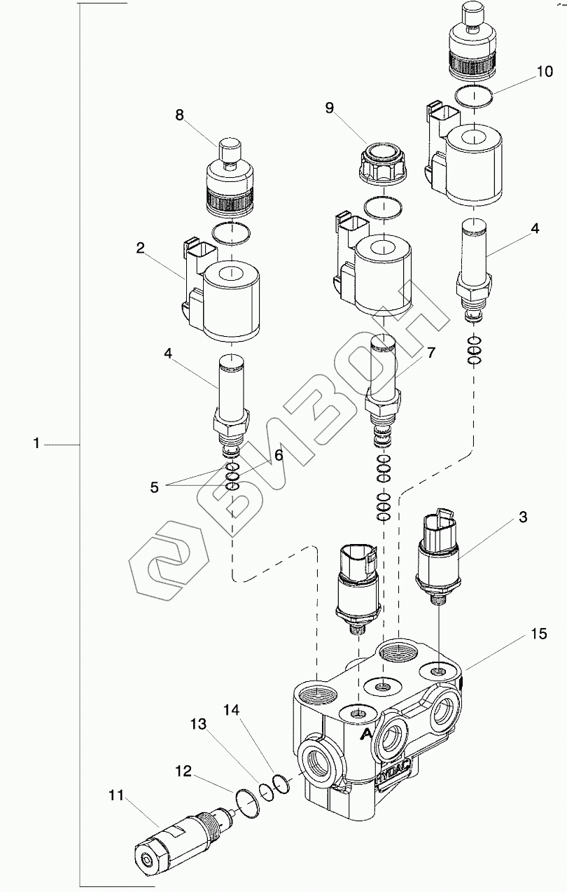 Графический каталог запасных частей к технике: New Holland T8. VALVE ASSEMBLY, SUSPENDED AXLE CONTROL