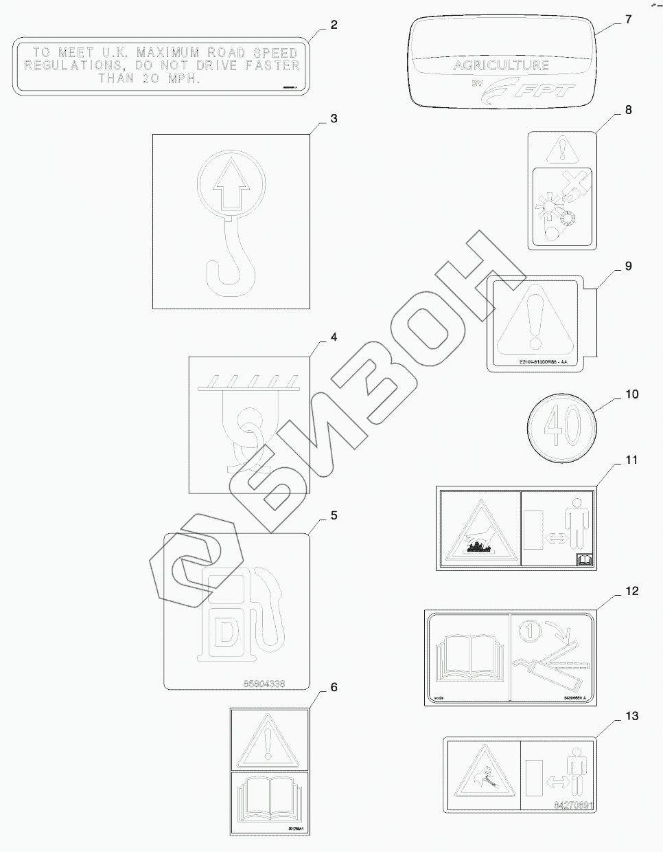 Графический каталог запасных частей к технике: New Holland T9.615, T9.670. DECALS - ISO