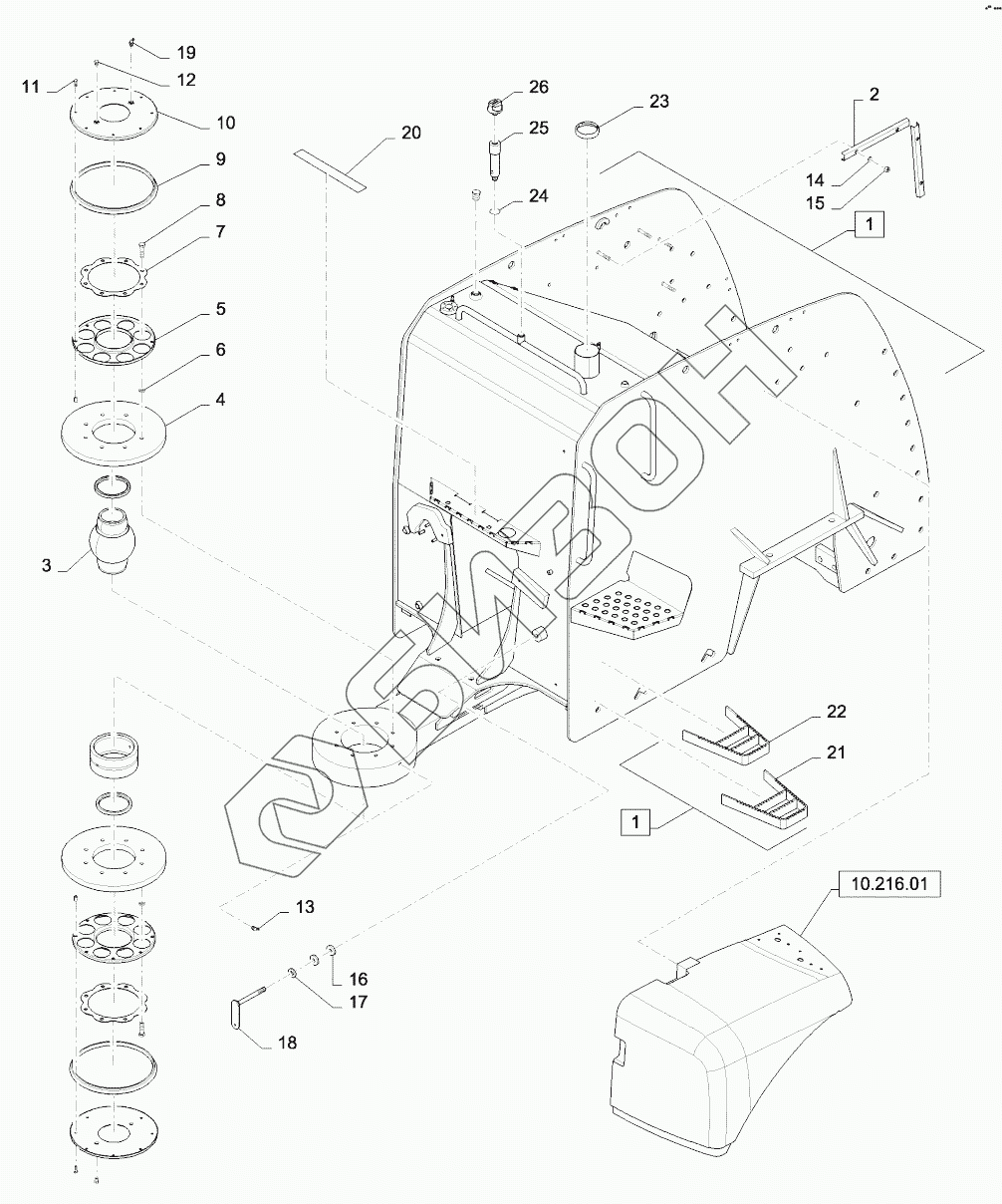 Графический каталог запасных частей к технике: New Holland T9.615, T9.670. REAR FRAME / FUEL TANKS AND FENDERS - T9.670