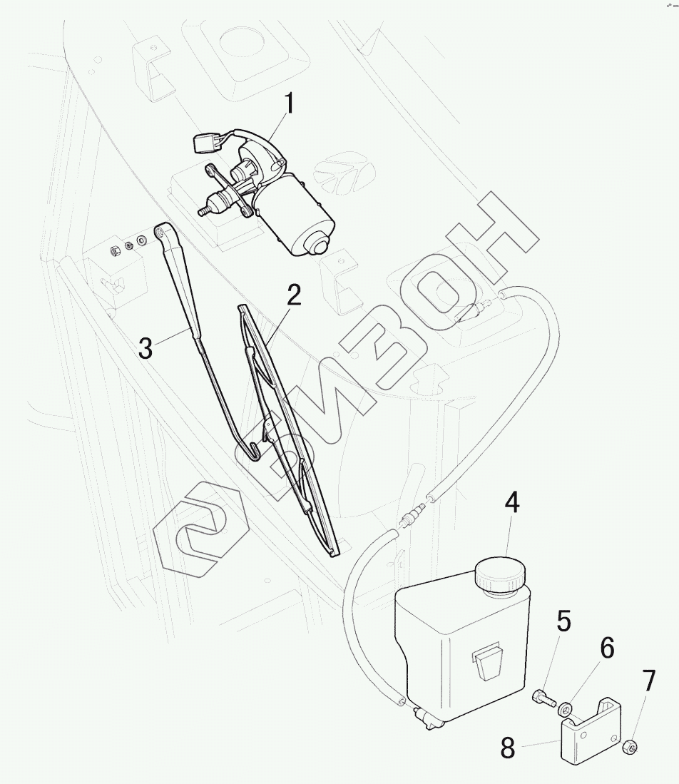 Графический каталог запасных частей к технике: New Holland TL5040. CAB - FRONT WINDSHIELD WIPER