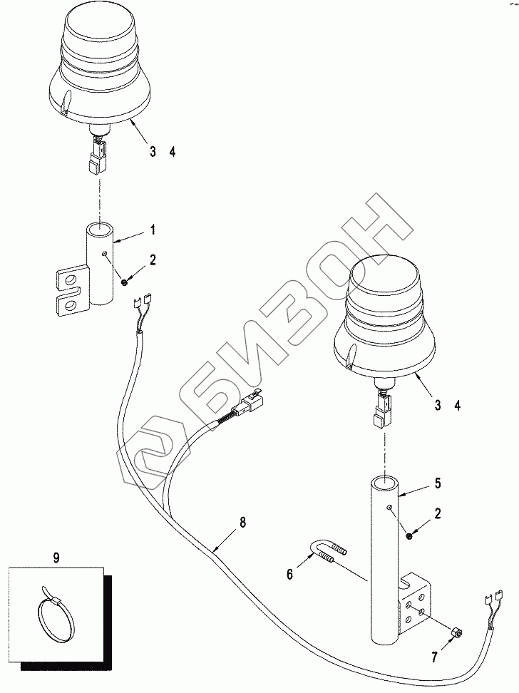 Графический каталог запасных частей к технике: New Holland Трактор TJ425 (часть 1). LAMP - STROBE