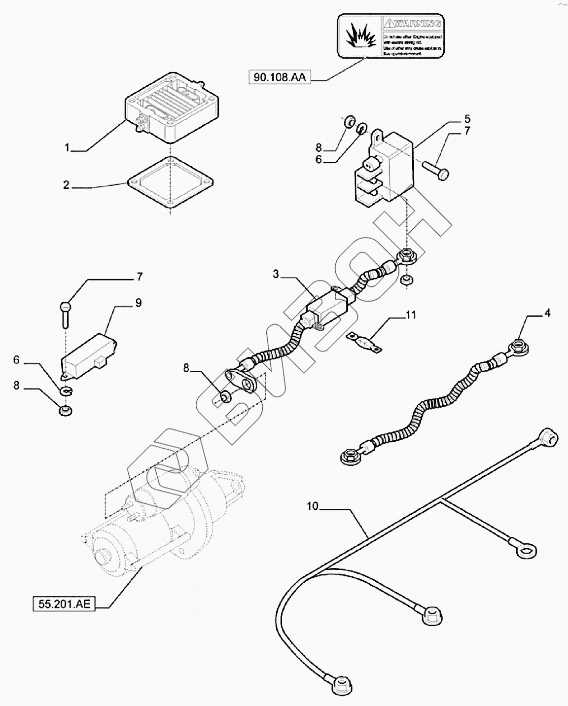 Графический каталог запасных частей к технике: New Holland TS6.110. 55.202.AY - THERMOSTART