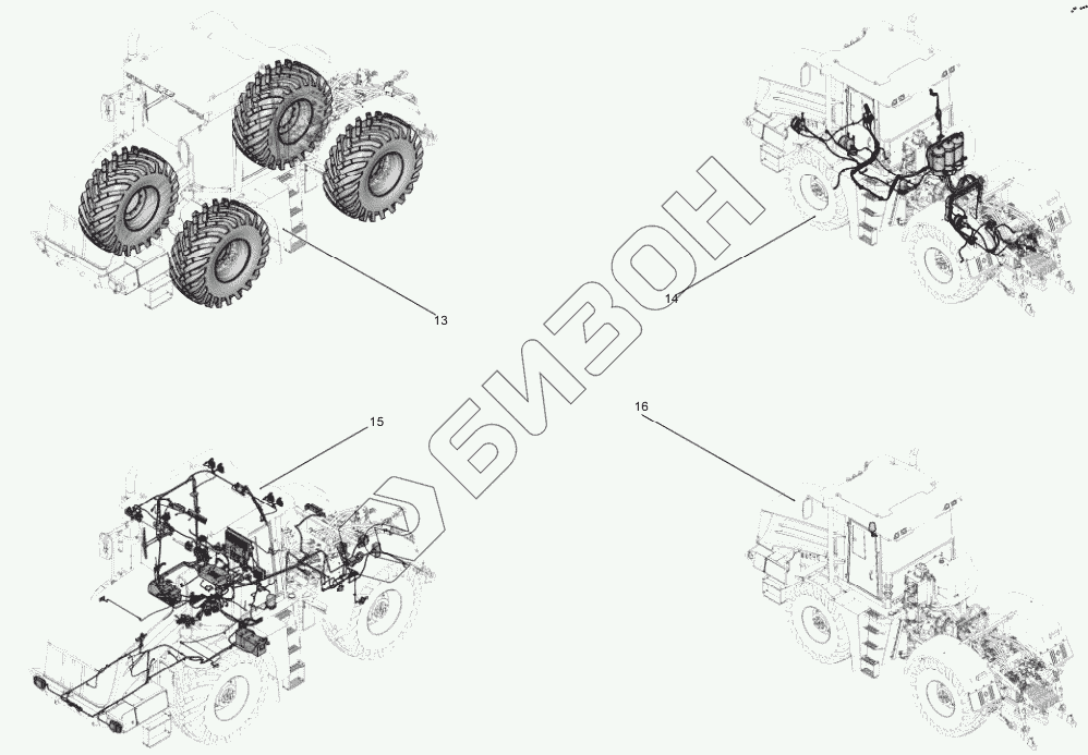Графический каталог запасных частей к технике: ПТЗ К-525 Премиум. Схема деления трактора