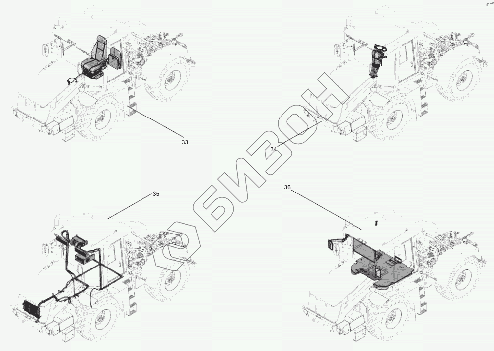 Графический каталог запасных частей к технике: ПТЗ К-525 Премиум. Схема деления трактора