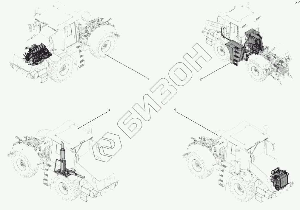 Графический каталог запасных частей к технике: ПТЗ К-525 Премиум. Схема деления трактора