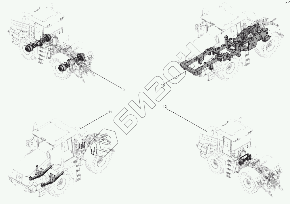 Графический каталог запасных частей к технике: ПТЗ К-525 Премиум. Схема деления трактора