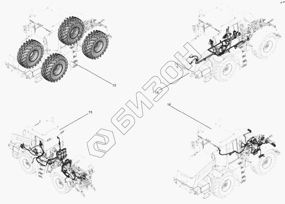 Графический каталог запасных частей к технике: ПТЗ К-525 Премиум. Схема деления трактора