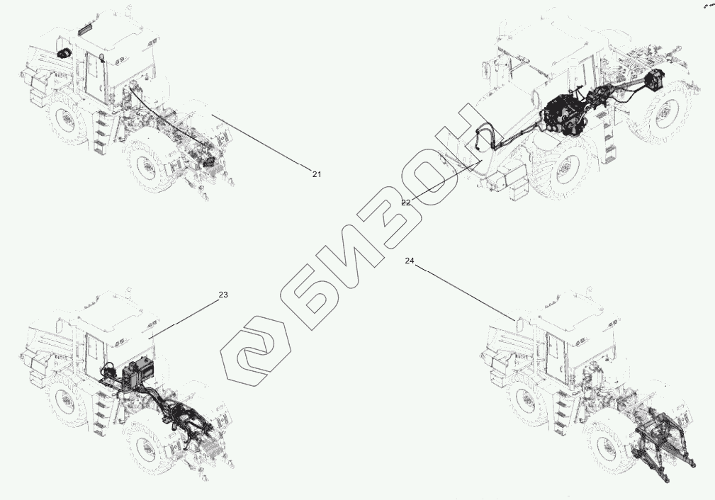 Графический каталог запасных частей к технике: ПТЗ К-525 Премиум. Схема деления трактора