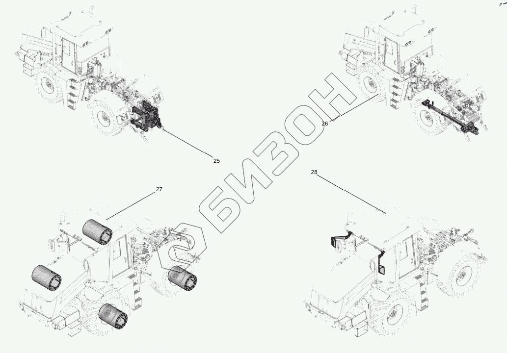 Графический каталог запасных частей к технике: ПТЗ К-525 Премиум. Схема деления трактора
