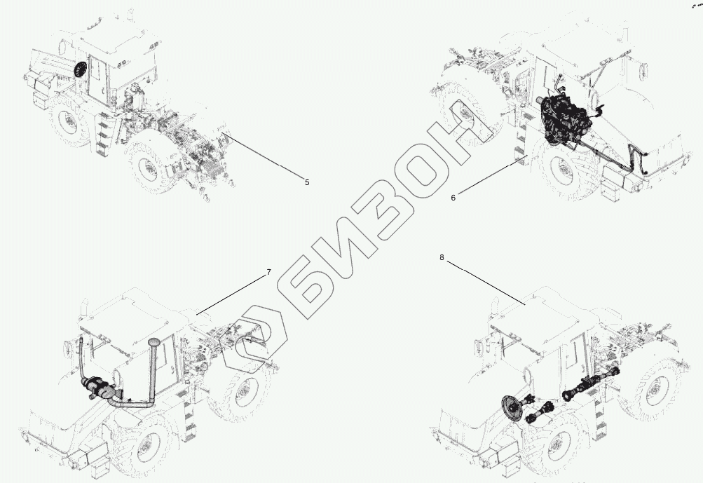 Графический каталог запасных частей к технике: ПТЗ К-525 Премиум. Схема деления трактора