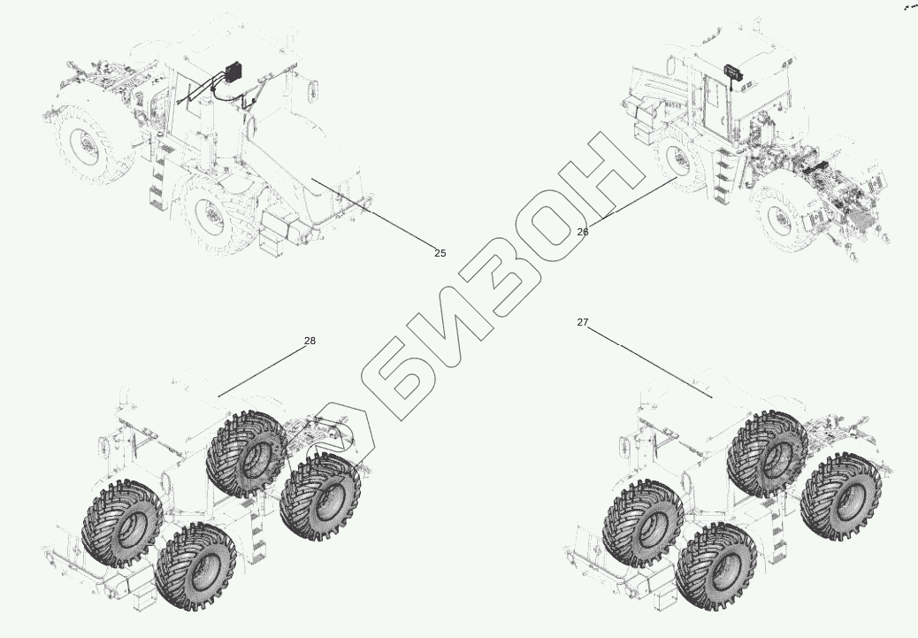 Графический каталог запасных частей к технике: ПТЗ К-525 Премиум. Схема деления трактора