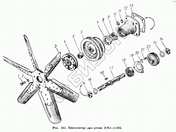 | 22 | 236-1308104-Б | Шестерня привода вентилятора |