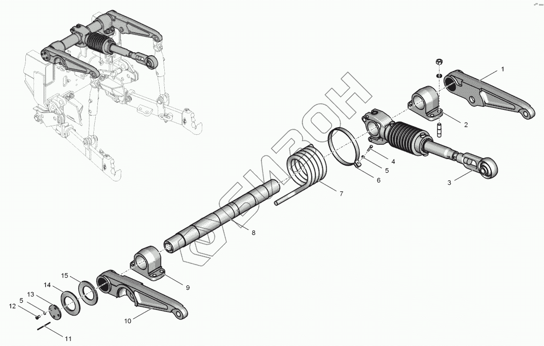 Графический каталог запасных частей к технике: ПТЗ К-744Р1 "Стандарт". 744Р3-4628130 Вал рычагов