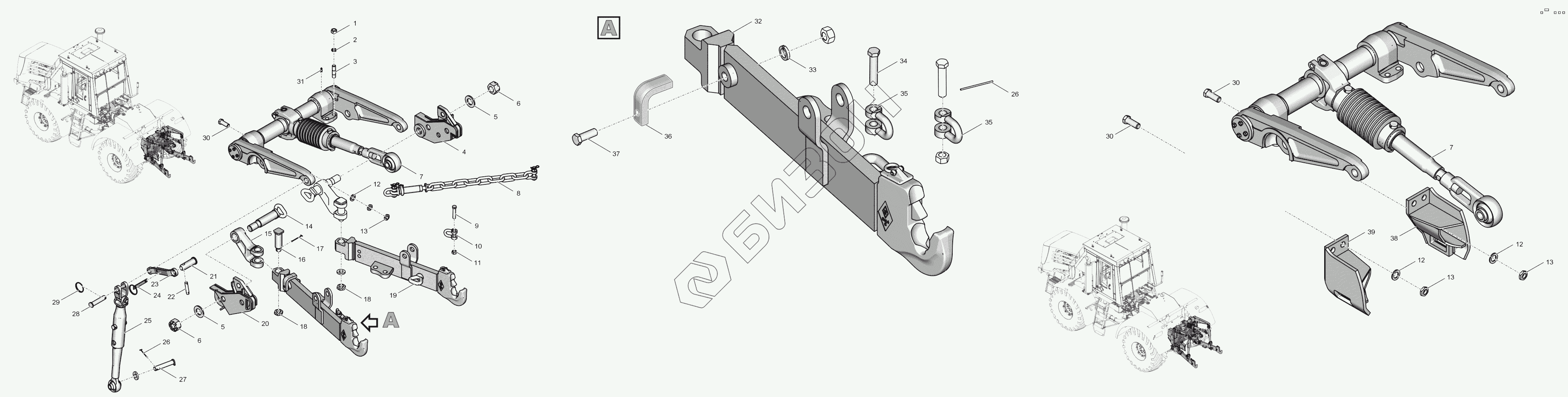 Графический каталог запасных частей к технике: ПТЗ К-744Р2 "Премиум". 744Р3-4628000 Механизм навески
