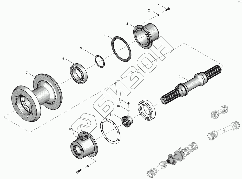 Графический каталог запасных частей к технике: ПТЗ К-744Р3 "Премиум". 2256010-2220000 Опора промежуточная