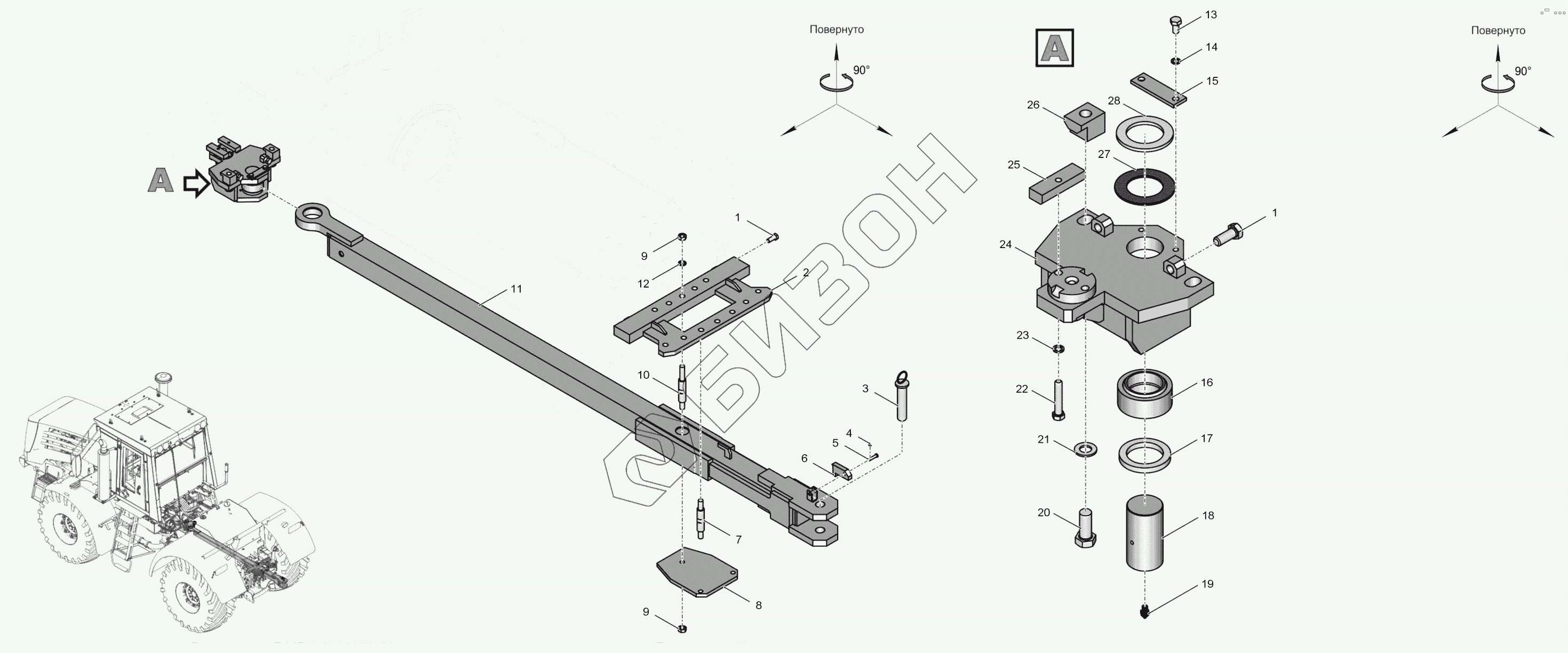 Графический каталог запасных частей к технике: ПТЗ К-744Р3 "Премиум". 744Р1-4642000 Маятниковое прицепное устройство