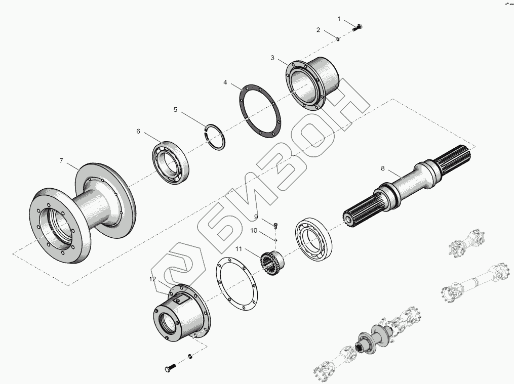Графический каталог запасных частей к технике: ПТЗ К-744Р4 "Стандарт". 2256010-2220000 Опора промежуточная