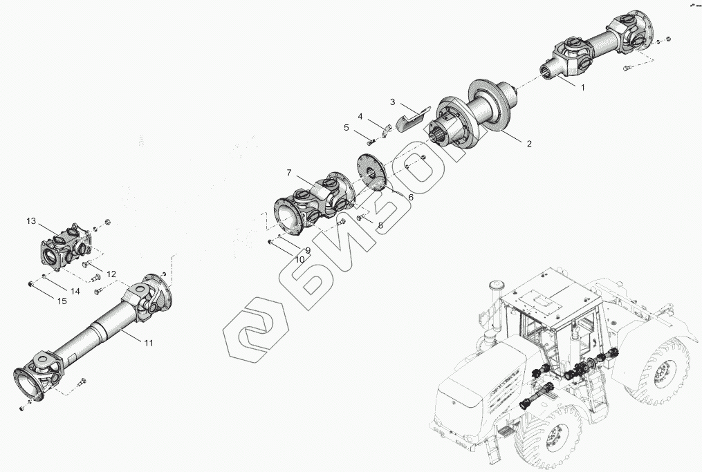 Графический каталог запасных частей к технике: ПТЗ К-744Р4 "Стандарт". 744Р2-2200000 Передача карданная