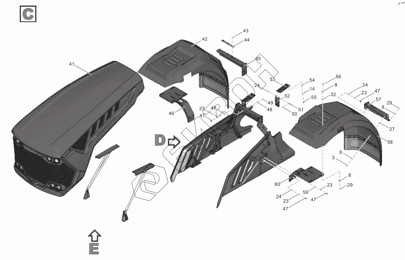 Графический каталог запасных частей к технике: ПТЗ К-7МСт. 735Б-84.00.000 Облицовка