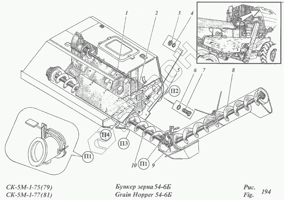 Графический каталог запасных частей к технике: РСМ CK-5М-1 «Нива». Бункер зерна 54-6Б