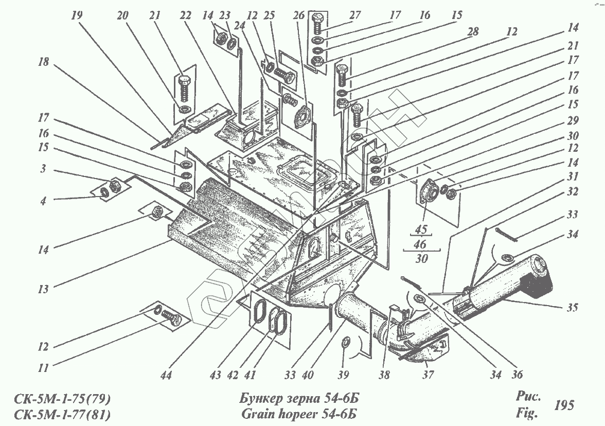 Графический каталог запасных частей к технике: РСМ CK-5М-1 «Нива». Бункер зерна 54-6Б