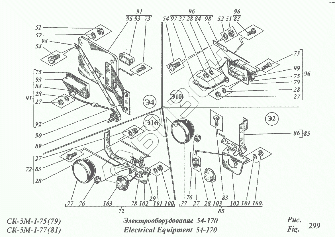 Графический каталог запасных частей к технике: РСМ CK-5М-1 «Нива». Электрооборудование 54-170